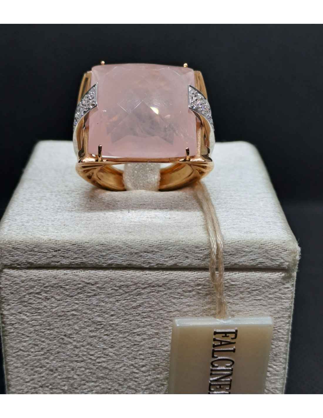 L'anello donna in oro rosa 750 con quarzo rosa e diamanti è un gioiello elegante e raffinato, perfetto per aggiungere un tocco di lusso e stile a qualsiasi outfit.
