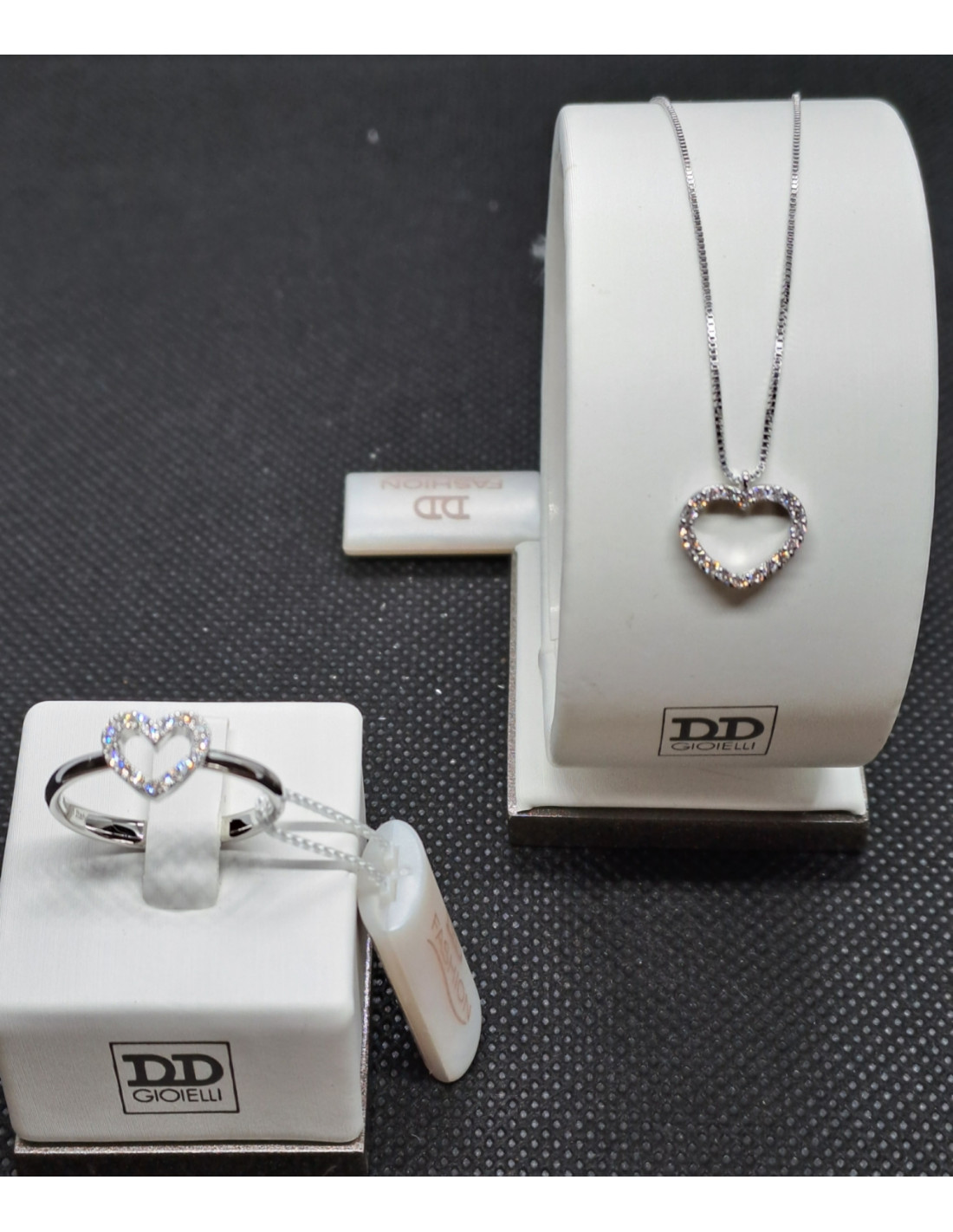 Catenina donna con cuore in oro bianco 750 e diamanti, e anello oro bianco con cuore in oro b. , e diamanti